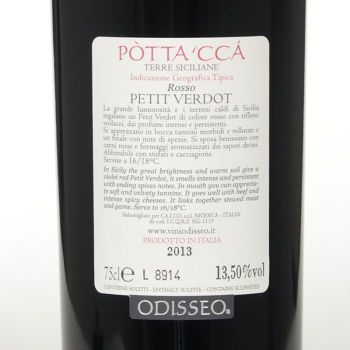 Pòtta ‘ccà, bring hierher, ein modicanischer Ausdruck, der dazu auffordert das Weinglas zu bringen, um den Geschmack und die Gefühle zu entdecken, die es enthält. Der Petit Verdot färbt und aromatisiert das Glas mit seinen wollüstigen und runden Tanninen, seinem blumigen Bouquet und Noten frischer Früchte, die ihn romantisch und anmutig machen. Seine Gewürznoten und sein Rot mit Nuancen von Violett erwecken Neugier. Deshalb ist ein pòtta ‘ccà ein absolutes Muss!