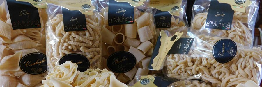 La Pasta a’Muricà viene prodotta utilizzando semola di Grano Duro con l’aggiunta di sola acqua di fonte. Viene poi trafilata in bronzo ed essiccata lentamente (20/24 h) a basse temperature fino al raggiungimento del contenuto di umidità ideale, in modo da preservarne le migliori proprietà organolettiche. Le trafilature in bronzo esercitano sull’impasto una trazione tale che, a seguito dei processi di essiccazione, conferiscono alla pasta quel tipico carattere rugoso e poroso utile a trattenere condimenti e sughi. La lenta essiccazione a temperature basse e controllate garantisce alla pasta la possibilità di conservare tutte le sostanze nutritive del grano. Il grano Russello è una delle 32 cultivar di frumento duro tipico dell’entroterra siciliano coltivato soprattutto nelle zone di Agrigento, Caltanissetta, Palermo, Ragusa e Trapani; con caratteristiche di media precocità di semina e di maturazione tardiva. Le sue farine, con poca acqua, permettono la produzione di pani di pasta dura dotati di grande digeribilità.